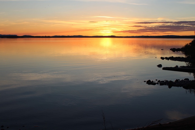 Dans l’après midi nous arrivons à Ostersund avec du soleil, nous rejoignons d’autres camping caristes au bord du lac Storsjön (63°11’19’’ - 14°37’47’’)